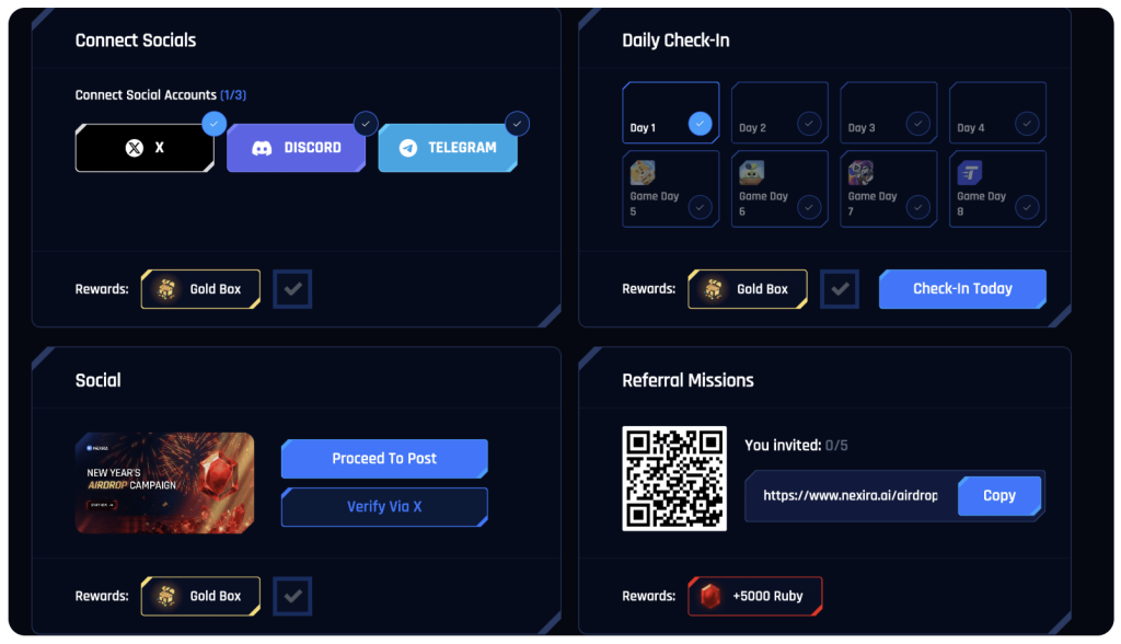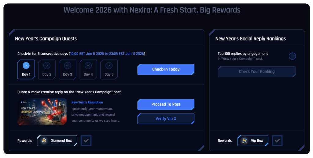 Nexira’s new year’s airdrop campaign with a prize pool of 50 million points. How to participate: