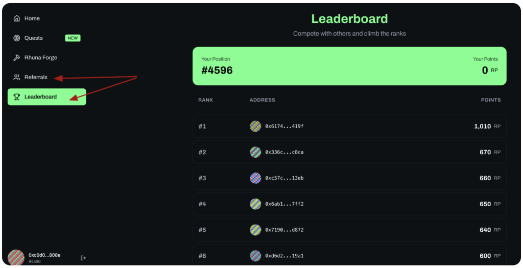 Rhuna’s airdrop hunters must have a Petra wallet to claim an airdrop. On the website, users need to create a profile, complete a task, and climb the leaderboard to earn returns.
