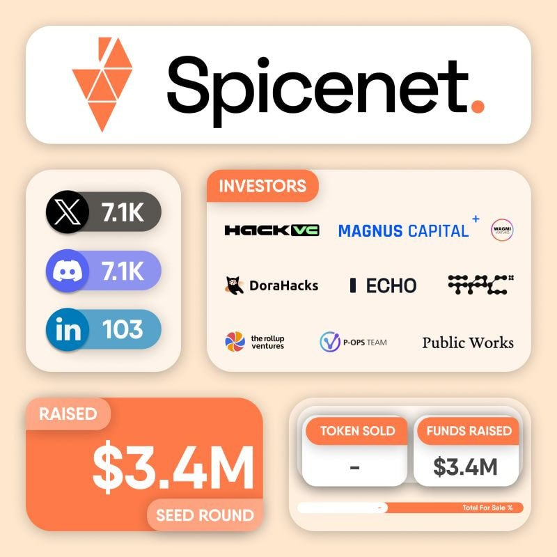 - Founded in 2023 by Matthew McConnell in Kingston, Canada, Spicenet raised $3.4 million in a seed round led by Hack VC to build a permissionless, high-performance trading infrastructure, reducing liquidity fragmentation and enhancing developer flexibility.