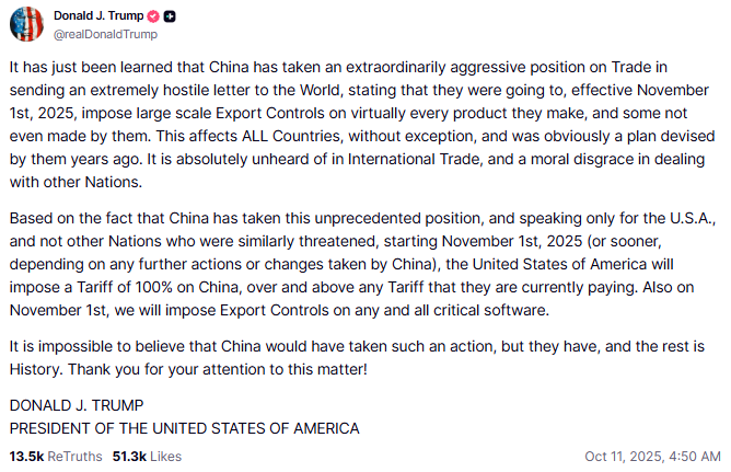 Trump mentioning 100% Tariff on China