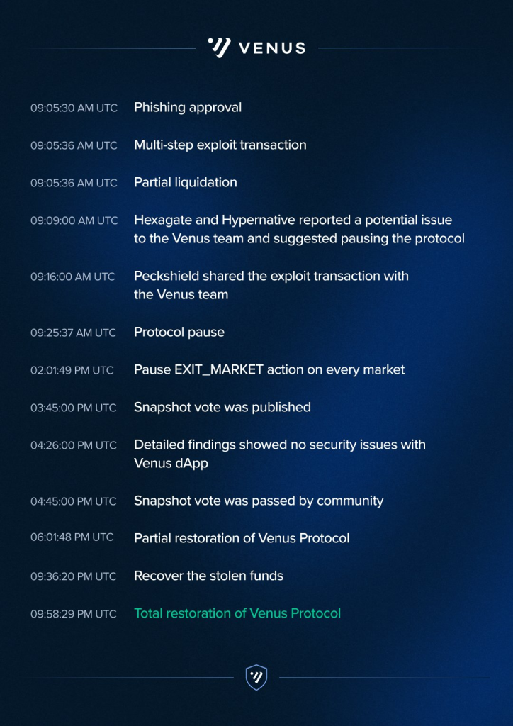 - The decentralized lending platform Venus Protocol successfully helped a user recover $13.5 million in crypto stolen in a phishing attack.